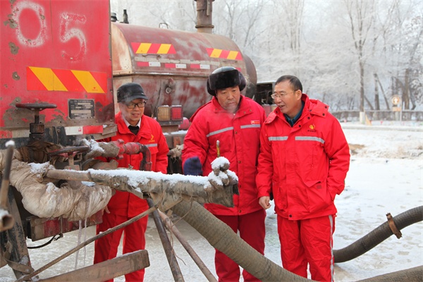 正當(dāng)人們還在享受著室溫帶來的一絲暖意的時候,一場突如其來事件改變了人們寧靜、有序的生活。。。因為國網(wǎng)能源在進(jìn)行設(shè)備檢修過程中備用設(shè)備出現(xiàn)故障,造成整個石油基地不能正常供暖,給千家萬戶的正常生活造成了很大的影響。采油廠領(lǐng)導(dǎo)及時制定了各項應(yīng)急措施,同時要求駐礦單位最大限度的提供一切設(shè)備和人員投入到這場保溫?fù)岆U的會戰(zhàn)中來。我們準(zhǔn)油股份在接到搶險的通知后就成立了以總經(jīng)理石強為組長,各部門、各事業(yè)部經(jīng)理為副組長的應(yīng)急搶險小組,石總經(jīng)理第一時間下達(dá)指令,要不惜一切代價配合采油廠做好這次搶險工作。在石油技術(shù)事業(yè)部生產(chǎn)辦的積極協(xié)調(diào)下,每一部熱油車、每一部罐車接到指令后從不同的油區(qū)趕回基地,修理廠的各位師傅們更是主動放棄了休息的時間,把存在故障的車輛恢復(fù)好投入到搶險中來。