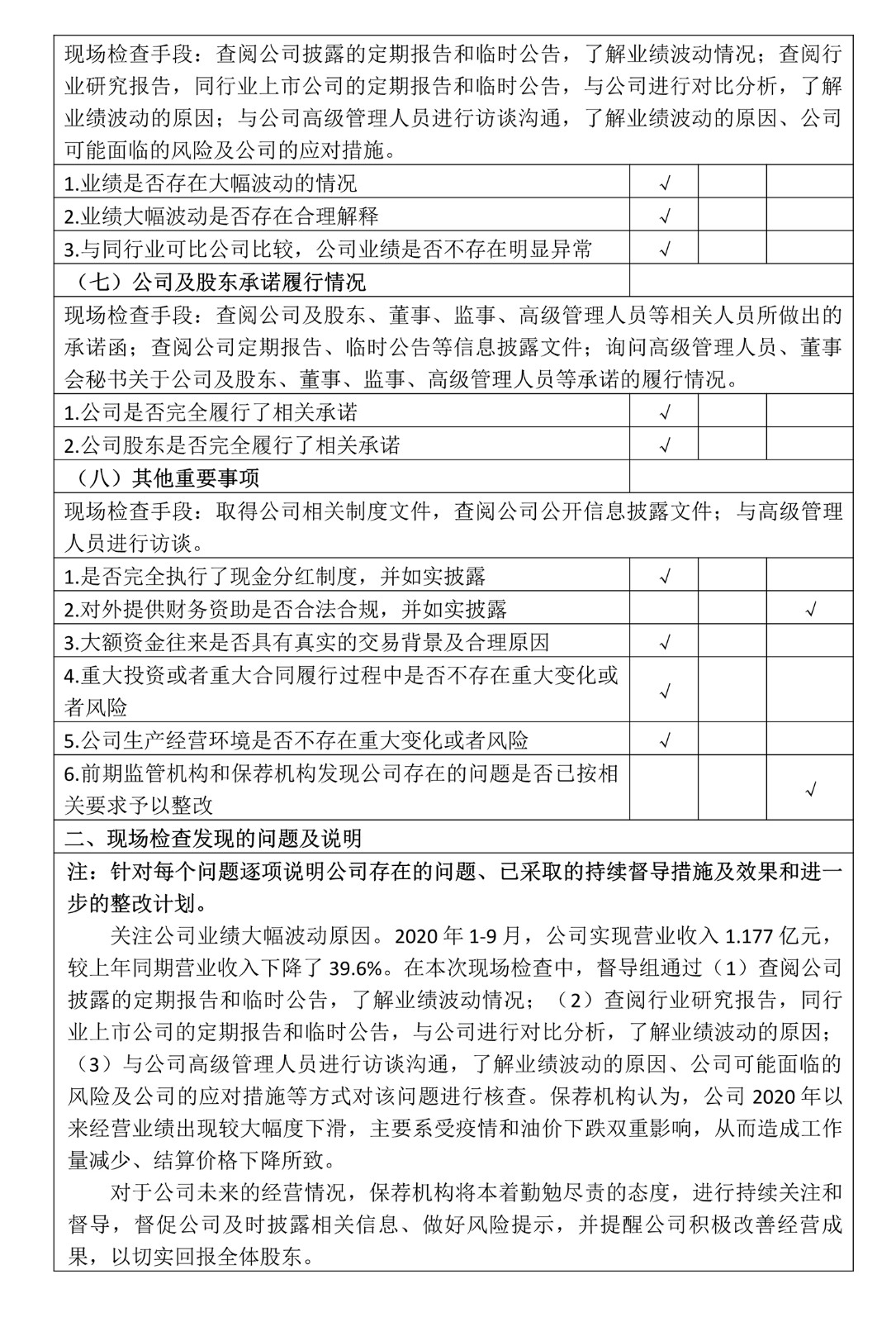 >> 中原證券關(guān)于準(zhǔn)油股份2020年度持續(xù)督導(dǎo)工作定期現(xiàn)場檢查報告