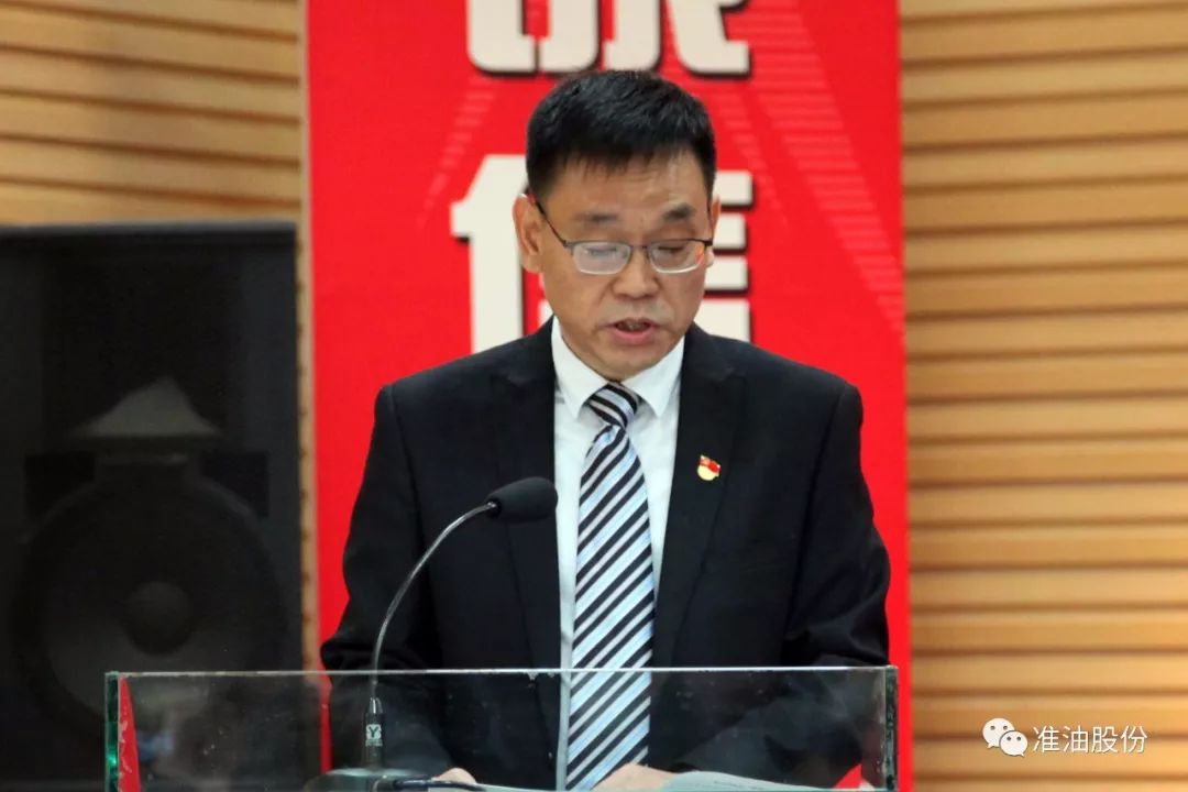 準(zhǔn)油股份臨時(shí)黨委副書記、監(jiān)事會主席、工會主席佐軍同志作報(bào)告