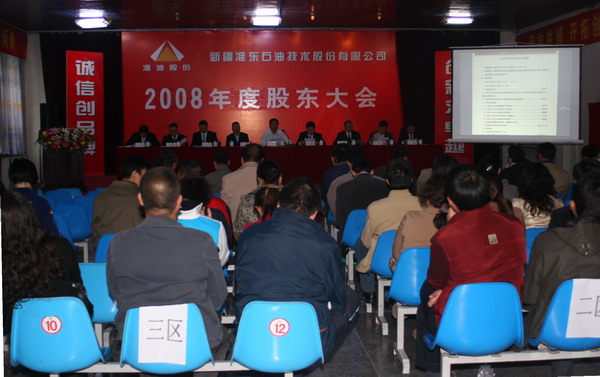 2009年4月18日,準(zhǔn)油股份在辦公樓一樓活動(dòng)室召開(kāi)了2008年年度股東大會(huì)。大會(huì)由公司董事長(zhǎng)秦勇先生主持。